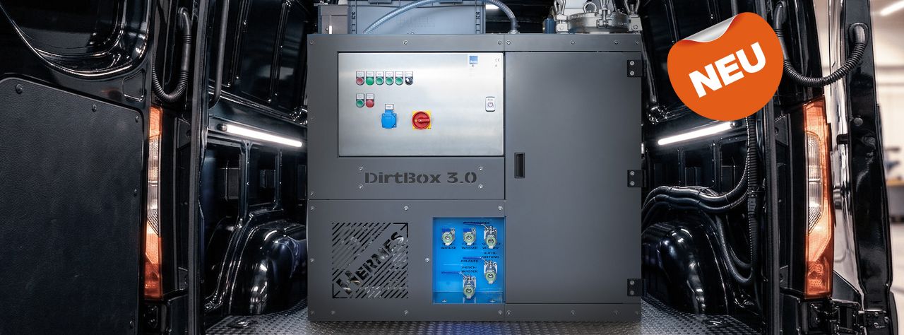 Die DirtBox 3.0 ermöglicht es Ihnen, das bei der Reinigung anfallende Schmutzwasser direkt vor Ort fachgerecht aufzubereiten. Das Wasser wird in patentierten Auffangwannen 3.0 gesammelt, zur Anlage gepumpt und dort in einem mehrstufigen Prozess gefiltert. Das Ergebnis ist so sauber, dass es wieder für die Reinigung verwendet werden kann. Dieser geschlossene Wasserkreislauf spart nicht nur bis zu 80% Frischwasser, sondern macht Sie auch unabhängig von Einleitgenehmigungen und schützt Sie vor teuren Bußgeldern durch die Einhaltung aller Umweltauflagen.