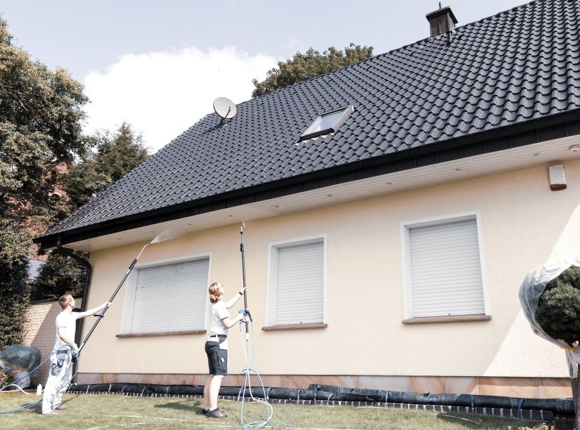 Wenn sich die Expertenteams für Malerbedarf und Fassadenreinigung zusammentun, kann man sich auf ein durchdachtes System und exzellente Verarbeitung verlassen.